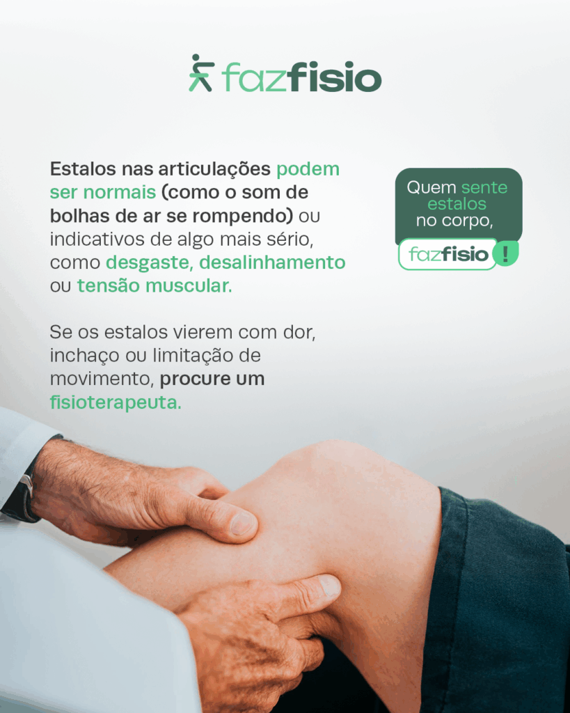 Nem sempre é possível saber a diferença sozinho: Uma avaliação com fisioterapeuta ou quiropraxista ajuda a entender se o estalo é apenas um som natural do corpo… ou um pedido de socorro. Na dúvida, procure a Fazfisio!